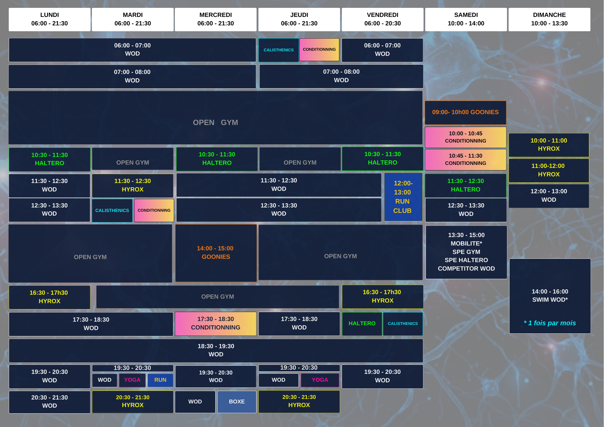 - Accès aux installations en Open Gym